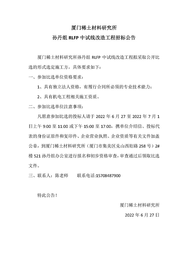 关于RLFP中试线改造工程招标公告